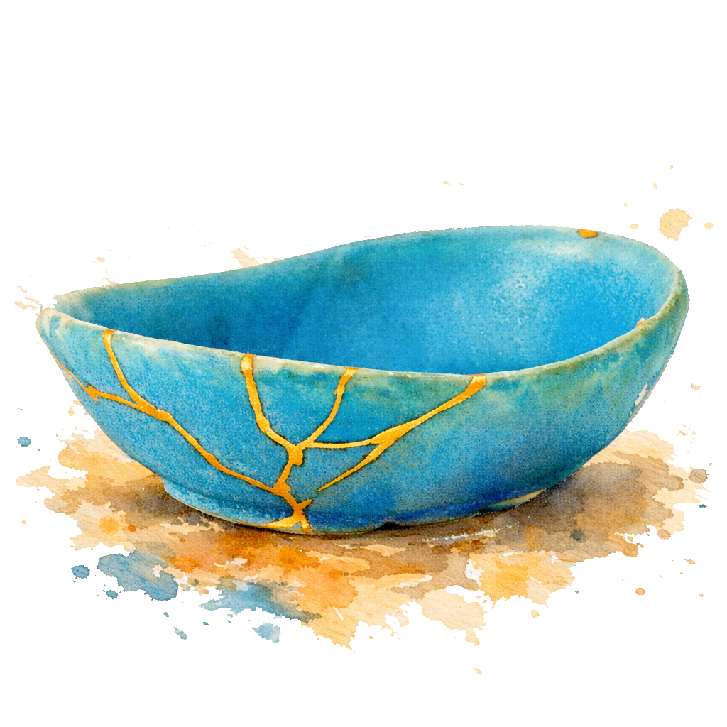 Ce livret est conçu comme un Kintsugi intérieur, cet art japonais qui répare les céramiques brisées avec de la poudre d’or.